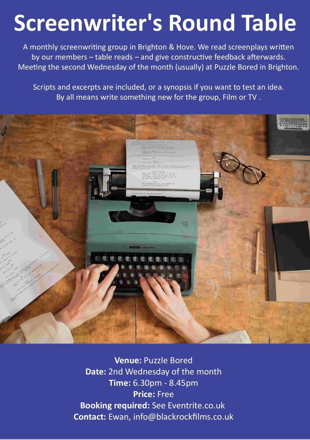 Screenwriter's Round Table - Wednesday 11th March at 6.30pm.