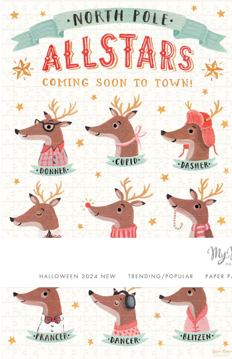 Celebrate Santa's all stars with this whimsical and festive Christmas puzzle. Featuring a charming illustration depicting Rudolph and his friends, this holiday puzzle makes a perfect stocking stuffer or neighbor gift to spread holiday cheer.